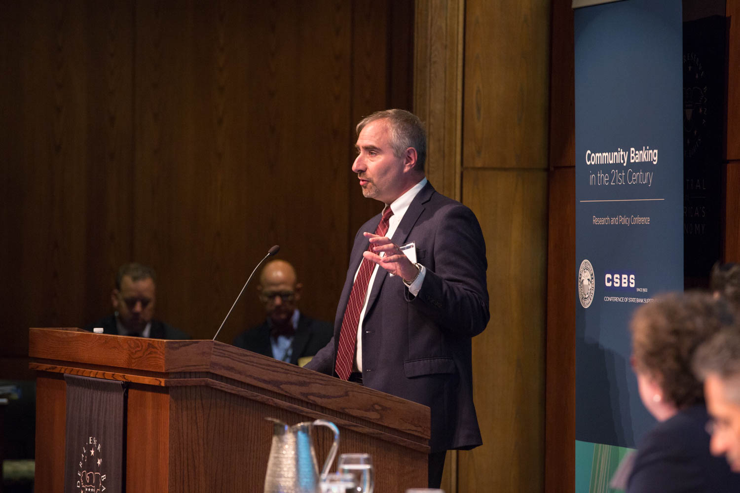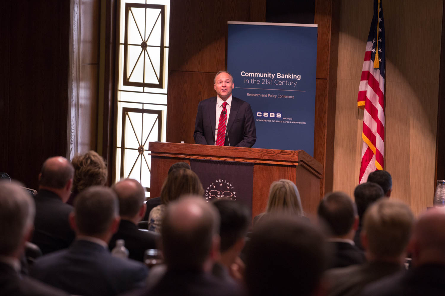 Federal Reserve Governor Jay Powell gave opening remarks at the fourth annual conference. Other guest speakers included CSBS President and CEO John Ryan and Federal Reserve Bank of St. Louis President James Bullard.